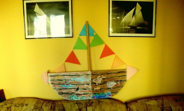 Potem zrobiliśmy sobie pamiątkowe zdjęcie: Piraciki, okręt i ja. Okręt – ten WSPANIAŁY na zdjęciu obok, który dostałem w prezencie od Dzieci z przedszkola SKRAWEK NIEBA w Kowalach pod Gdańskiem.
