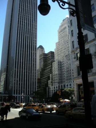 To był szok. Myślę, że dla całej grupki. Przyzwyczajeni do niskiej zabudowy Queens, bez „buforu” w formie możliwości przygotowania się do widoku drapaczy chmur z okien np. samochodu (metro w NYC pomyka pod ziemia i wodą), zostaliśmy wprost przygnieceni ogromem budynków, ulicznego ruchu, tłumu ludzi i wszystkiego co w NYC można napotkać. Ale że należymy do dzielnej żeglarskiej braci, to otrzepawszy się z lekka z pierwszego szoku, z minami zdecydowanie pewnymi ruszyliśmy 5th Avenue w dół – na