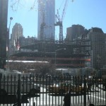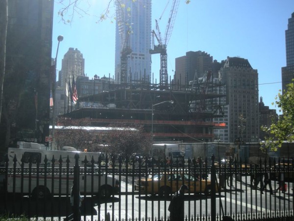na Manhattanie czyli wieże World Trade Center. Zniszczone jak wiemy na skutek ataku terrorystycznego. Plac wokół Ground Zero jest szczelnie osłonięty i zasłonięty płotem. A w środku wre budowa wielkiej Freedom Tower, która ma upamiętnić ofiary ataku z 11 września, stać się symbolem woli rozwoju, siły, pokonania strachu i parcia do przodu tych, co zostali. Wokół placu budowy znajdują się miejsca upamiętniające tamte tragiczne dni. W