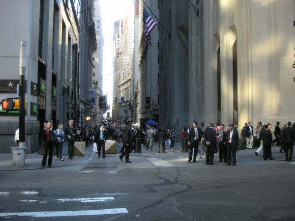 ). Do budynku maja wstęp tylko osoby uprawnione, więc turyści mogą oglądać budynek i wejście do Nowojorskiej Giełdy Papierów Wartościowych – zza płotku. A nazwa Wall Street pochodzi od płotu obronnego, a potem palisady i muru, który biegł wzdłuż linii obecnej ulicy i ochraniał mieszkańców ówczesnego Nowego Amsterdamu przed atakami rdzennej ludności (Indian) oraz Brytyjczyków.ok. 350 lat temu…