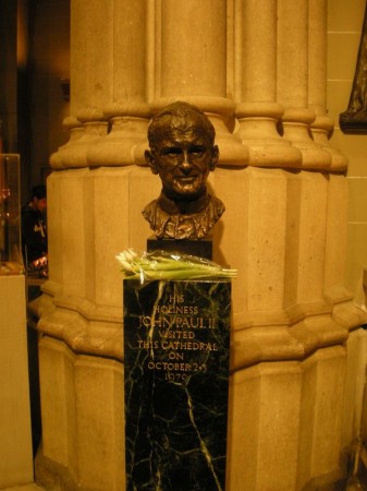 Piątej Alei, pomiędzy 50th i 51th Street w centrum Manhattanu, dokładnie naprzeciwko Rockefeller Center. W katedrze znaleźliśmy polski „kącik”. Kopia obrazu Matki Boskiej częstochowskiej, obrazy polskich świętych i błogosławionych oraz popiersie papieża