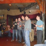 rozpocząłem koncert. Pierwszy set był rozpoznaniem bojem, a następne 3 – wspólną wspaniałą żeglarską zabawą. Okazało się podczas rozmów, że większość z widzów do polonijni żeglarze i ich znajomi. Przyszli na koncert z nadzieją, że wreszcie pośpiewają znane i nieznane piosenki i posłuchają nowego (?) i dobrego (?) wykonania. I tak się stało! Byli zachwyceni. Ja też. Pierwsze lody zostały przełamane. Ludzie mnie „kupili”! Okazało się, że od wyjazdu kilka lat temu z Chicago na Karaiby Jacka Reshke, który i tam szanty organizował, skończyły się też szantowe koncerty. Więc ludzie są spragnieni żeglarskiego śpiewania. No to proooooszę bardzo!!! Adrenalina była po obu stronach, a potem wspólne fotografie, gadki spod żeglarskiej chatki, plany na najbliższą przyszłość i identyfikacja wspólnych znajomych.